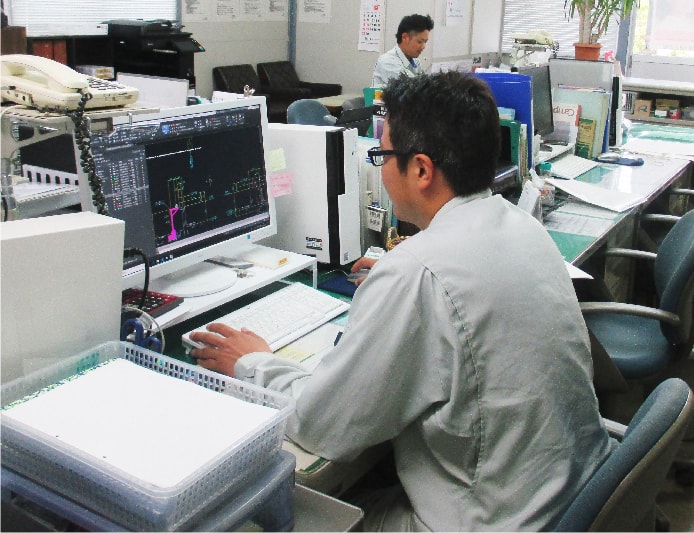 CADを使って、化学プラントの配管、設備の設計をする仕事です。お客様からの依頼があった工事に対して、図面を作成します。